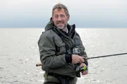 Wolfsbarsche vor BorkumHorst Hennings beim Auswerfen vor der Kulisse von Borkum.Bild: © NDR/Mario Jeschke