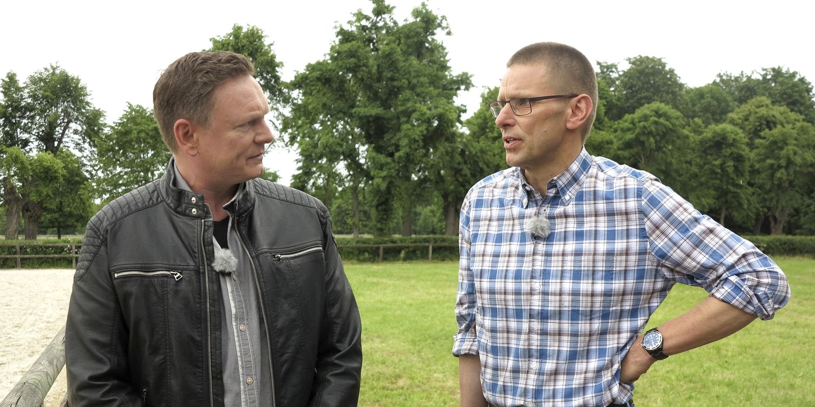 Das Sächsische ElblandModerator Axel Bulthaupt im Gespräch mit dem Pächter vom Gestüt Granitz Matthias Schneider. (v.l.)Bild: © MDR