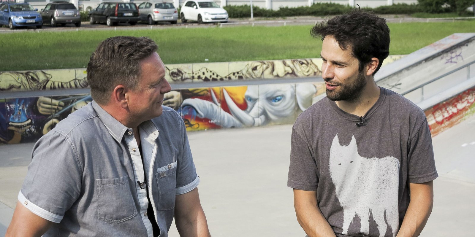 Das Sächsische ElblandModerator Axel Bulthaupt im Gespräch mit dem Dresdner Filmemacher Sebastian Linda (v.l.)Bild: © MDR