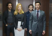 SamsonGehen ganz unterschiedlich mit dem Wissen um, dass ein Asteroid in 186 Tagen den ganzen Planeten zerstören könnte: Milliardär Darius Tanz (Santiago Cabrera, l.), Pentagon-Pressesprecherin Grace Barrows (Jennifer Finnigan, 2.v.l.), MIT-Student Liam Cole (Charlie Rowe, 2.v.r.) und der stellvertretende Verteidigungsminister Harris Edwards (Ian Anthony Dale, r.) ...Bild: © 2017 CBS Broadcasting Inc. / Sven Frenzel