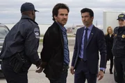 Der menschliche FaktorDarius (Santiago Cabrera, 2.v.l.) wird von Harris (Ian Anthony Dale, M.) als Verräter festgenommen. Kann der Milliardär der Regierung beweisen, dass er keiner ist?Bild: © 2017 CBS Broadcasting Inc. / Ben Mark Holzberg