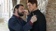 Padre Mobile oder den letzten beißen die HundeEnzo (Ciro de Chiara, l.) begrüßt Maik (Daniel Donskoy) bei den Baronis, einem gefährlichen Mafia-Clan.Bild: © TVNOW / Willi Weber