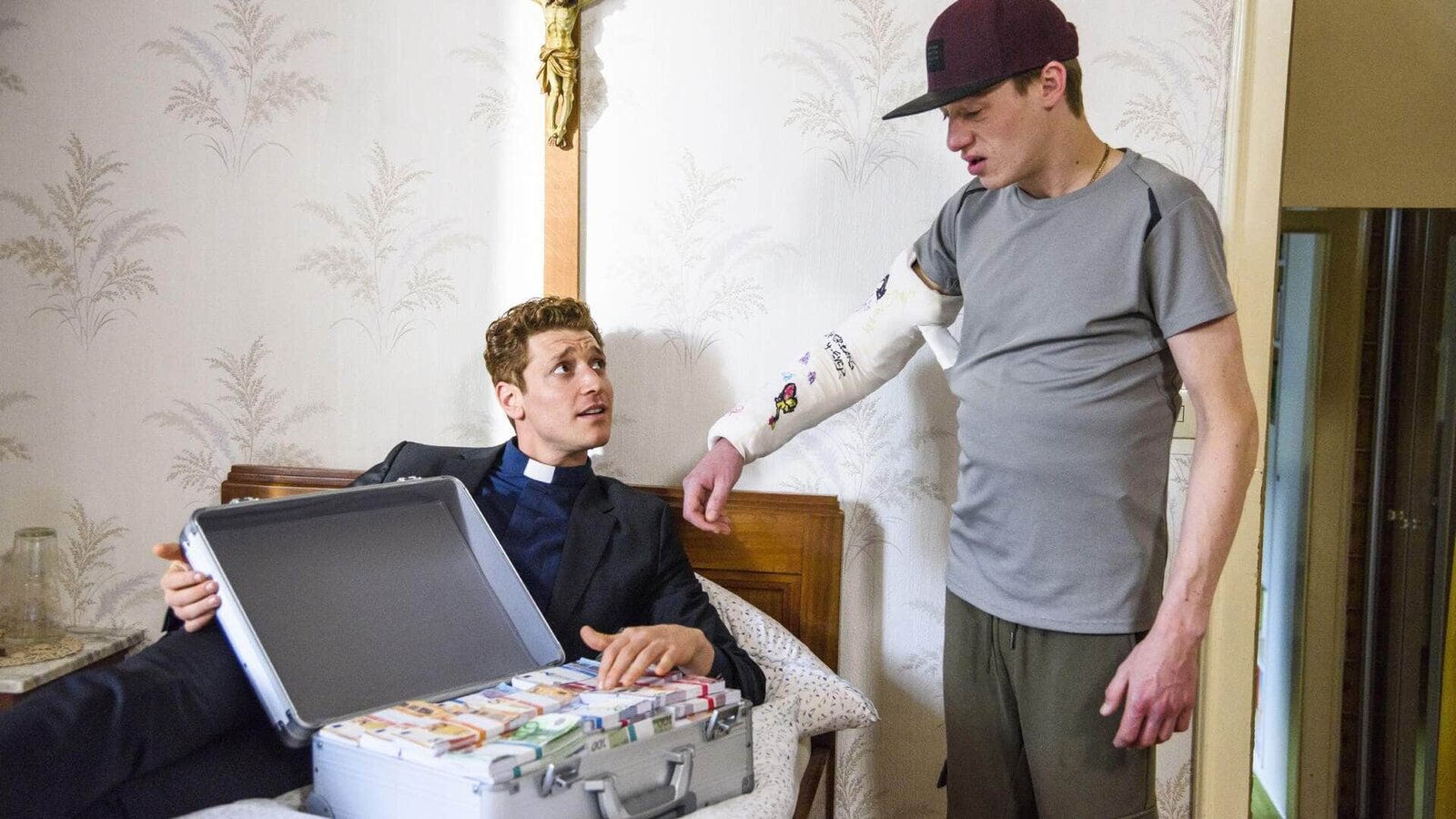 Mit 50 Dildos nach PanamaMaik (Daniel Donskoy, l.) bringt den Koffer mit dem Geld nach Hause. Für ihn und Kevin (Vincent Krüger) soll es morgen Richtung Panama gehen.Bild: © TVNOW / Julia Feldhagen