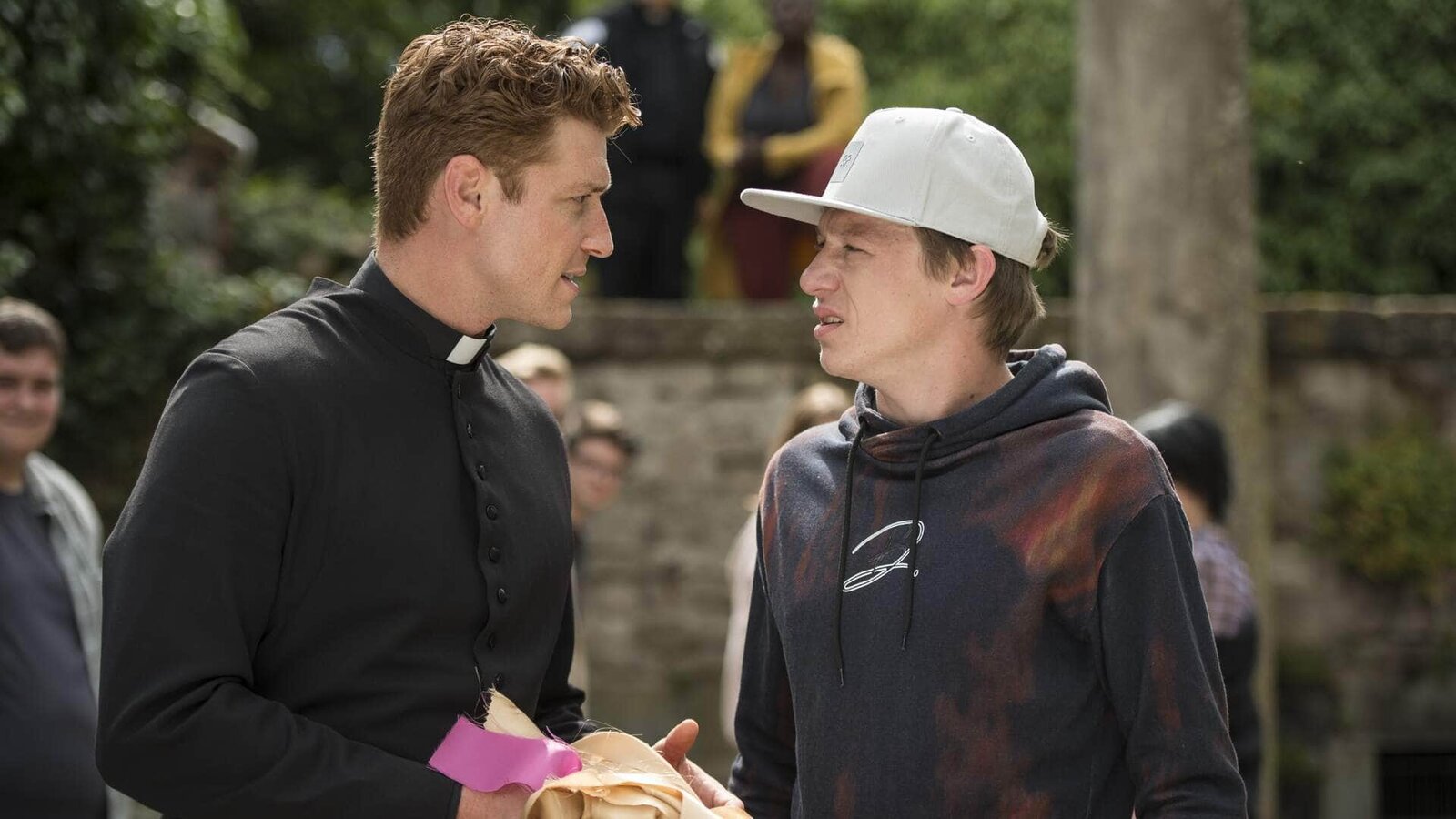 Und vergib uns unsere SchuldNachdem Maik (Daniel Donskoy, l.) Pfarrer Riemer (Stefko Hanushevsky) aus der Nachbargemeinde wieder zur Besinnung gebracht hat, führen die beiden ein ernstes Gespräch.Bild: © RTL / Kai Schulz