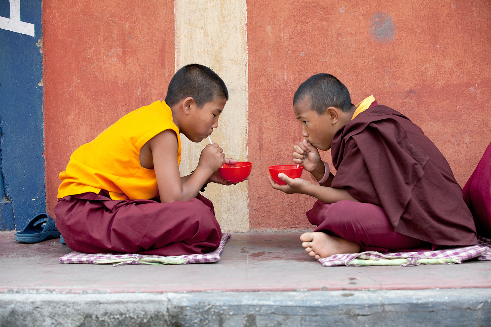 Loden - der kleine MönchDie jungen Mönche üben fürs Muschelhornblasen.Bild: © rbb