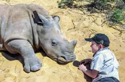 Hunter, der NashornflüstererHunter kümmert sich in seiner Freizeit um Nashornbabys, die keine Mutter mehr haben oder von ihrer Mutter verstoßen wurden. Außerdem sammelt er über das Internet Spenden und setzt sich dafür ein, dass das Wildern und Töten der Nashörner ein Ende hat.Bild: © arte