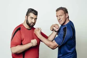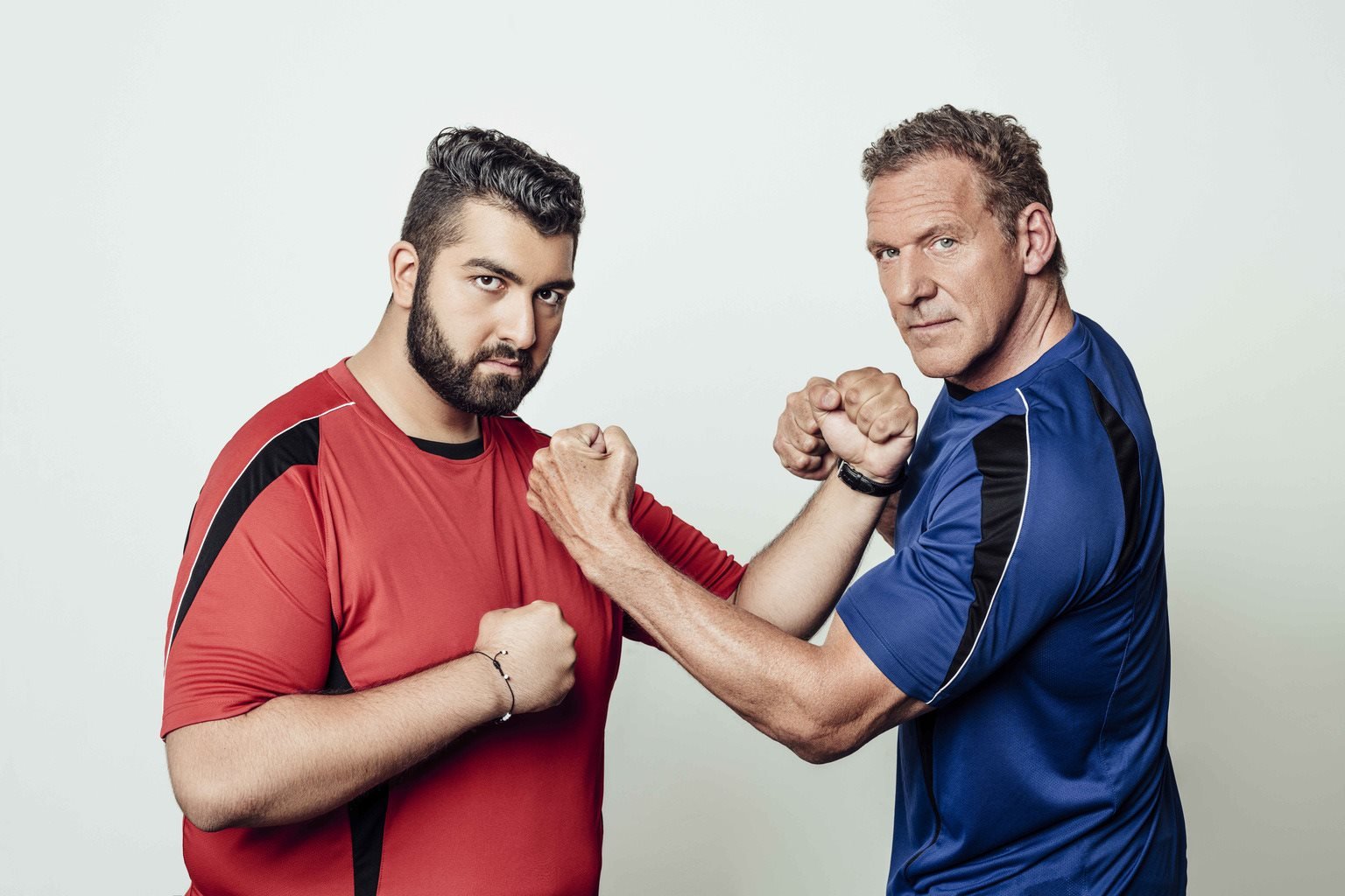 Faisal Kawusi gegen Ralf Moeller"Mr. Comedy" Faisal Kawusi (l.) vs. "Mr. Universum" Ralf Moeller (r.) kämpfen bei "Schlag den Star" um den Jackpot von 50.000 Euro.Bild: © ProSieben/Willi Weber Eigenproduktionsbild frei