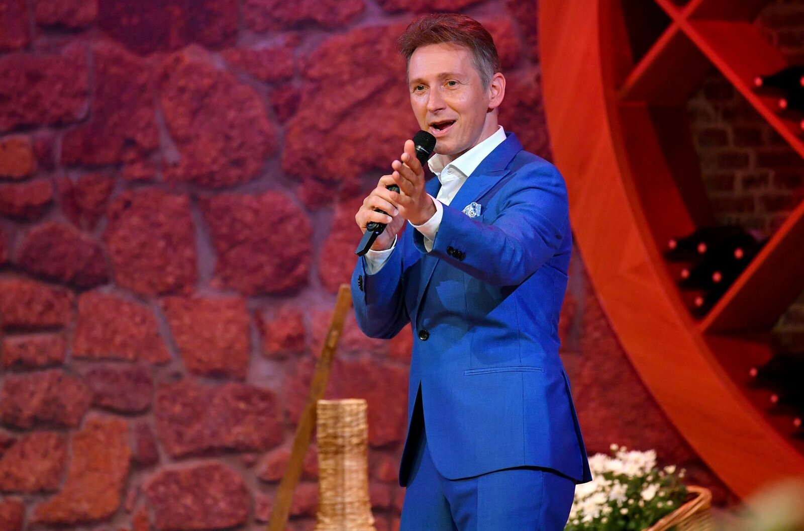 Folge 5SÜDWESTRUNDFUNK Schlager-Spaß mit Andy Borg Gastgeber, Sänger und Moderator Andy Borg begrüßt in „Schlager-Spaß mit Andy Borg“ einmal im Monat, samstags um 20:15 Uhr im SWR Fernsehen Stars des Schlagers und der Volksmusik, Talente aus dem Südwesten und Menschen mit besonderen Geschichten im gemütlichen Weinstuben-Studio in Villingen-Schwenningen. Andy Borg im Studio während der Aufzeichnung. © SWR/Kimmig/Kerstin Joensson, honorarfrei - Verwendung gemäß der AGB im engen inhaltlichen, redaktionellen Zusammenhang mit genannter SWR-Sendung und bei Nennung "Bild: SWR/MCP/Kerstin Joensson" (S2). SWR-Presse/Bildkommunikation, Baden-Baden, Tel: 07221/929-22287, foto@swr.deBild: © SWR/MCP/Kerstin Joensson