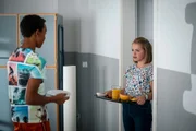 Folge 939Pawel (Noel Okwanga) macht Cäcilia (Carlotta Weide) eine klare Ansage.ÂBild: © MDR/Saxonia Media/Felix Abraham