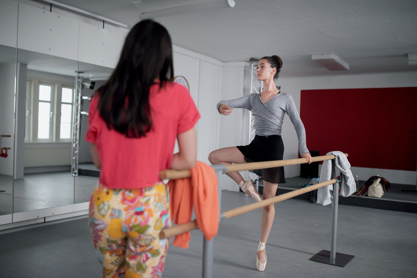 Folge 924Olivia Ahlers (Holly Geddert) schaut Carolin Tietz (Paloma Padrock) beim Tanztraining zu.Bild: © MDR/Saxonia Media/Felix Abraham