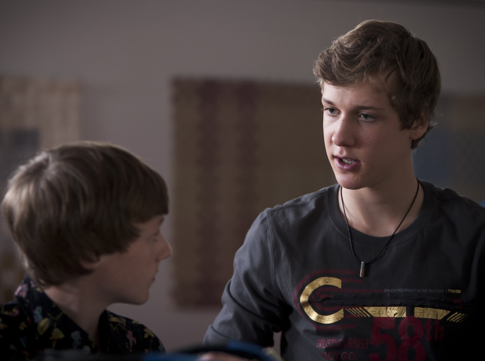 Folge 697Elias (Albert Wey, re.) versichert Tobias (Stefan Wiegand, li.), dass er auf jeden Fall ein guter Schülersprecher sein kann.Bild: © MDR/Neugebauer