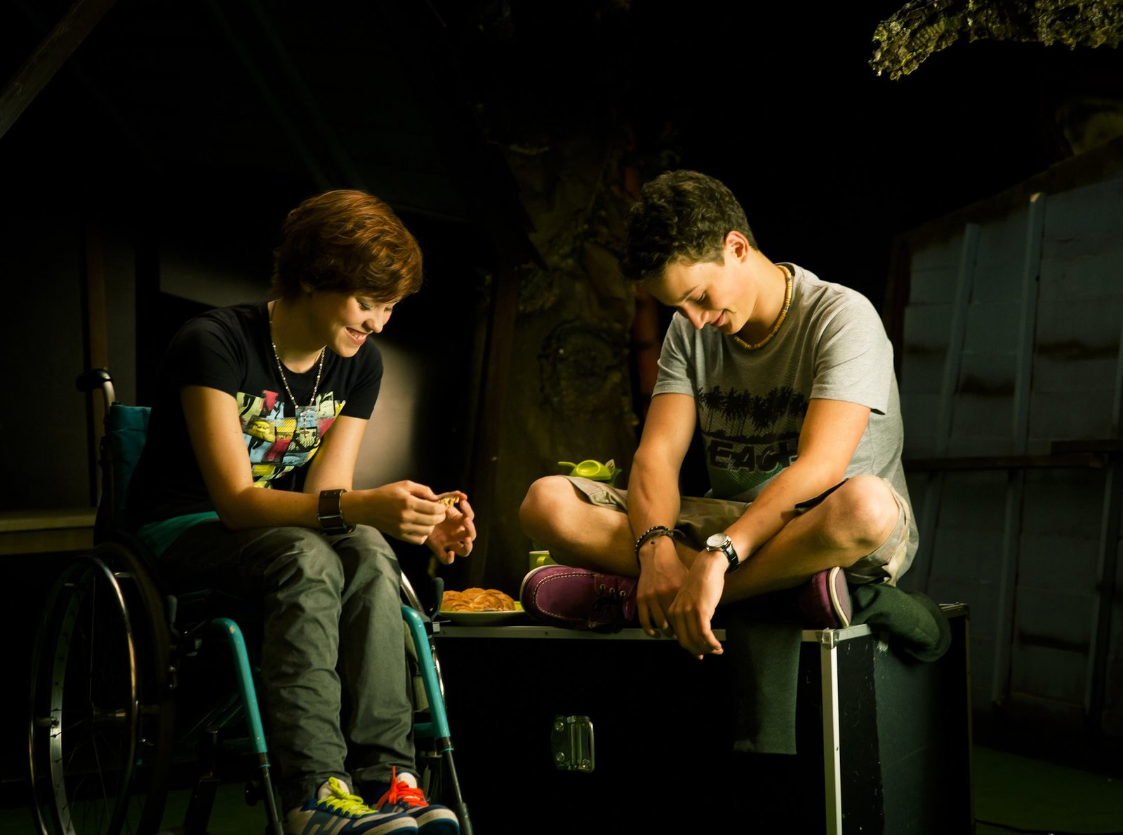 Folge 737Jo (Lena Ladig) und Sandor (Lennart König) sitzen verliebt in einer Theaterprobenpause zusammen.ÂBild: © MDR/Anke Neugebauer