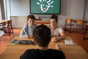 Folge 930Die Lernpaten Kasimir (Sinan El Sayed, li.) und Nick (Michael Schweisser, re.) sollen zusammen einen Physikvortrag meistern. Ein Team aus Einsteiner und Sportler scheint keine gute Idee zu sein.Bild: © MDR/Saxonia Media/Felix Abraham