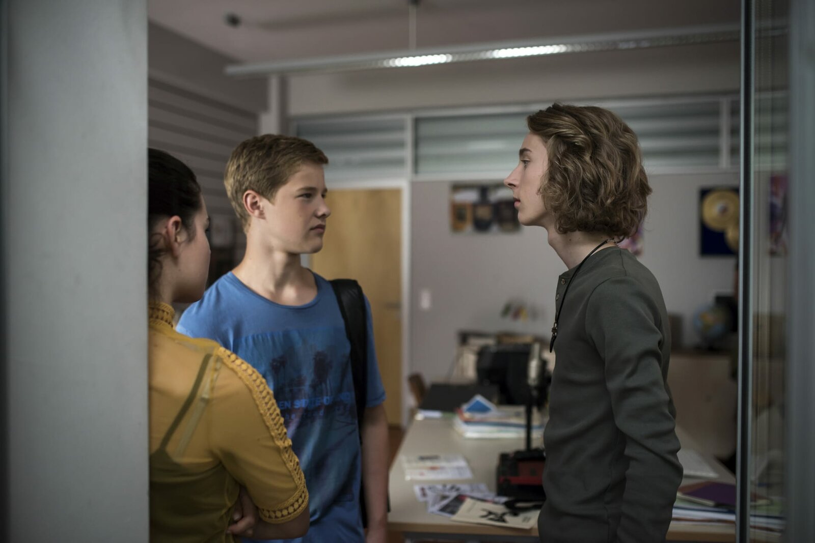 Folge 908Als Simon (Tom Linnemann, mitte) Olivia (Holly Geddert, links) droht, stellt Paul (Fynn Meinert, rechts) sich mutig dazwischen.Bild: © MDR/Saxonia Media/Felix Abraham