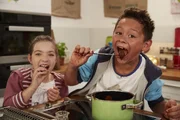 Fondue"Schmatzo - Der Koch-Kids-Club", "Fondue." Ran an die Fonduegabeln! Alex und die Kochkids bereiten heute Fondue zu. Die Kids wissen schnell was sie wollen: ein Käsefondue soll es werden. Alex mag Käse aber gar nicht! Als Kompromiss bereiten die Kochkids, Aron und Estella, auch noch ein asiatisches Fondue zu. Die scharfe Currypaste brennt ganz schön im Mund, da muss ein herrlich, lockeres Tiramisu her. Nachdem Aron und Estella nach dem Kaffee aber so aufgedreht sind, gibt es das Tiramisu ohne Kaffee.Noah, Damjan, Deniz und David sind heute nicht nur für die Bastelidee zuständig, sondern kümmern sich auch um das Käsefondue. Alex kann den Käse nicht mehr riechen, da übernehmen die Bastelkids das natürlich gerne für ihn. Als Dekoration für das langweilige Fonduebesteck, basteln sie bunte Chamäleons aus Pfeifenputzern.Bild: © ORF 1