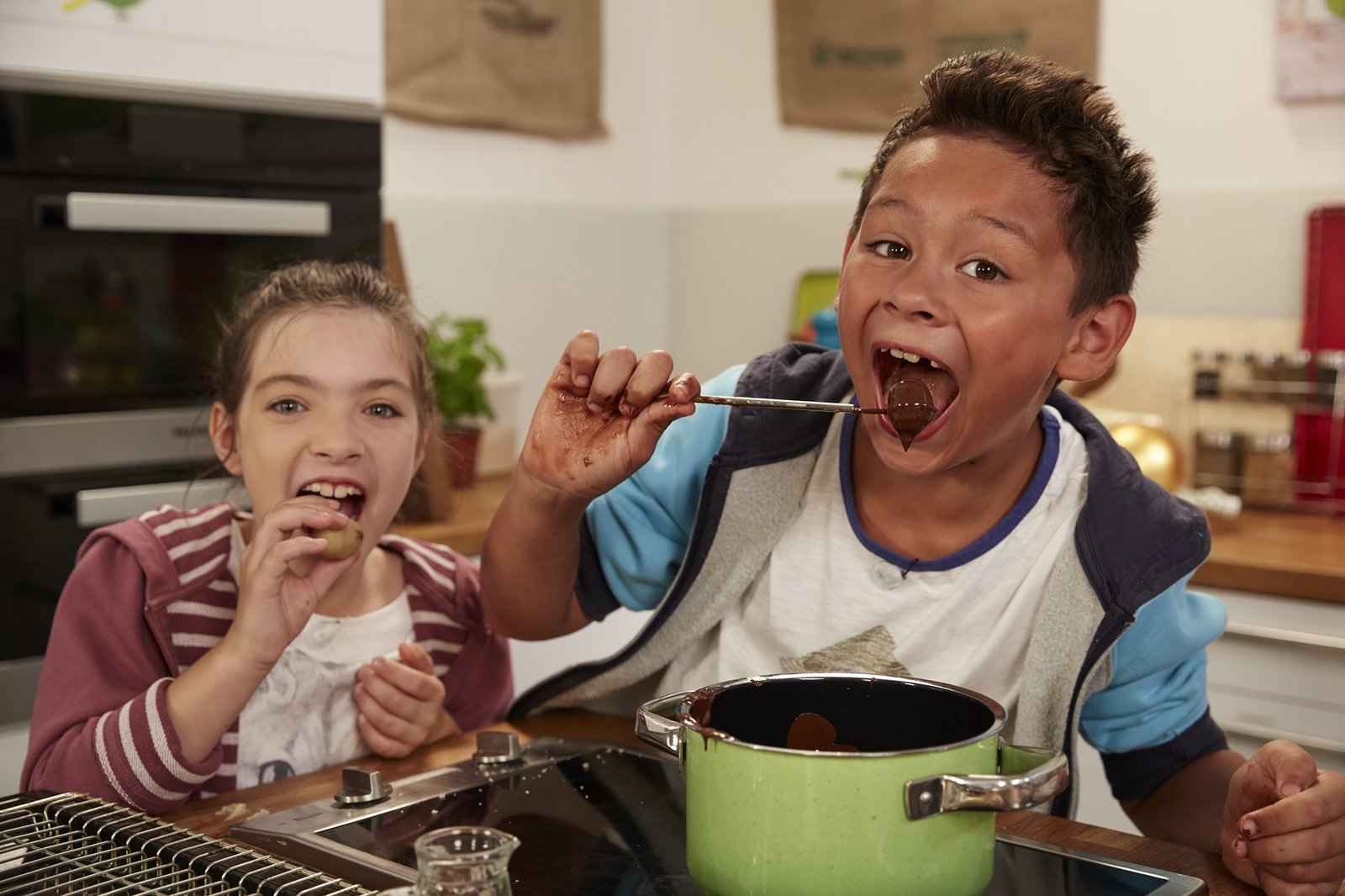 WeihnachtskekseSarah und Luis probieren schon mal die MozartkugelnBild: © ZDF/ORF/RenĂ© Rothkopf