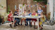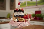 Teeparty"Schmatzo - Der Koch-Kids-Club", "Teeparty." Alles steht Kopf. Eine Teeparty ohne Tee? Ganz schön verrückt! Wie bei Alice im Wunderland geht es diesmal im Schmatzo Koch-Kids-Club zu. Bezaubernde Apfelstrudelrosen und Heiße Schokolade am Holzlöffel mit Marshmallows richten die feinen Damen Lara und Antonia an. Statt aus Tassen trinken sie doch tatsächlich aus den Teekannen. Was für eine verdrehte Welt. David, Hannah, Estella und Simon verwandeln gewöhnliches Geschirr in ein ausgefallenes Etagere, ein mehrstöckiges Gestell für allerlei Köstlichkeiten.Bild: © ZDF/ORF/René Rothkopf
