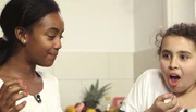 Marie macht Hamburger mit frischem KetchupLevin ist elf Jahre alt und lebt in der Nähe von Stuttgart. Sein Opa kommt ursprünglich aus Indien, wo Levin mit seiner Familie sogar fünf Monate gelebt hat. Deswegen kennt er sich in der indischen Küche bestens aus und zeigt seiner Freundin Madina, wie man ein leckeres Currygericht zubereitet.Bild: © SWR/Nordisch Filmproduktion/Jennifer Beisker