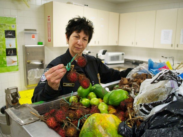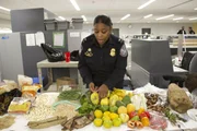 Gesucht und gefundenU.S. Customs and Border Protection Agricultural Specialist Enid Carruth inspects confiscated agricultural items at John F. Kennedy International Airport.Bild: © 1996–2013 National Geographic Society. All rights reserved.
