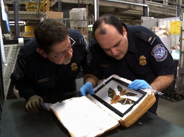 Rohes Fleisch und KokainCBP Agriculture Specialists examine an insect found crawling on animal trophies. (National Geographic/Lucky 8 TV)Bild: © Lucky 8 TV / National Geographic/Lucky 8 TV / National Geographic