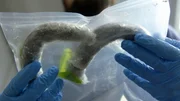 Flossen-SchmuggelTest pouches turn blue which confirm it's positive for methamphetamine. (National Geographic/Lucky 8 TV)Bild: © Lucky 8 TV / National Geographic/Lucky 8 TV / National Geographic