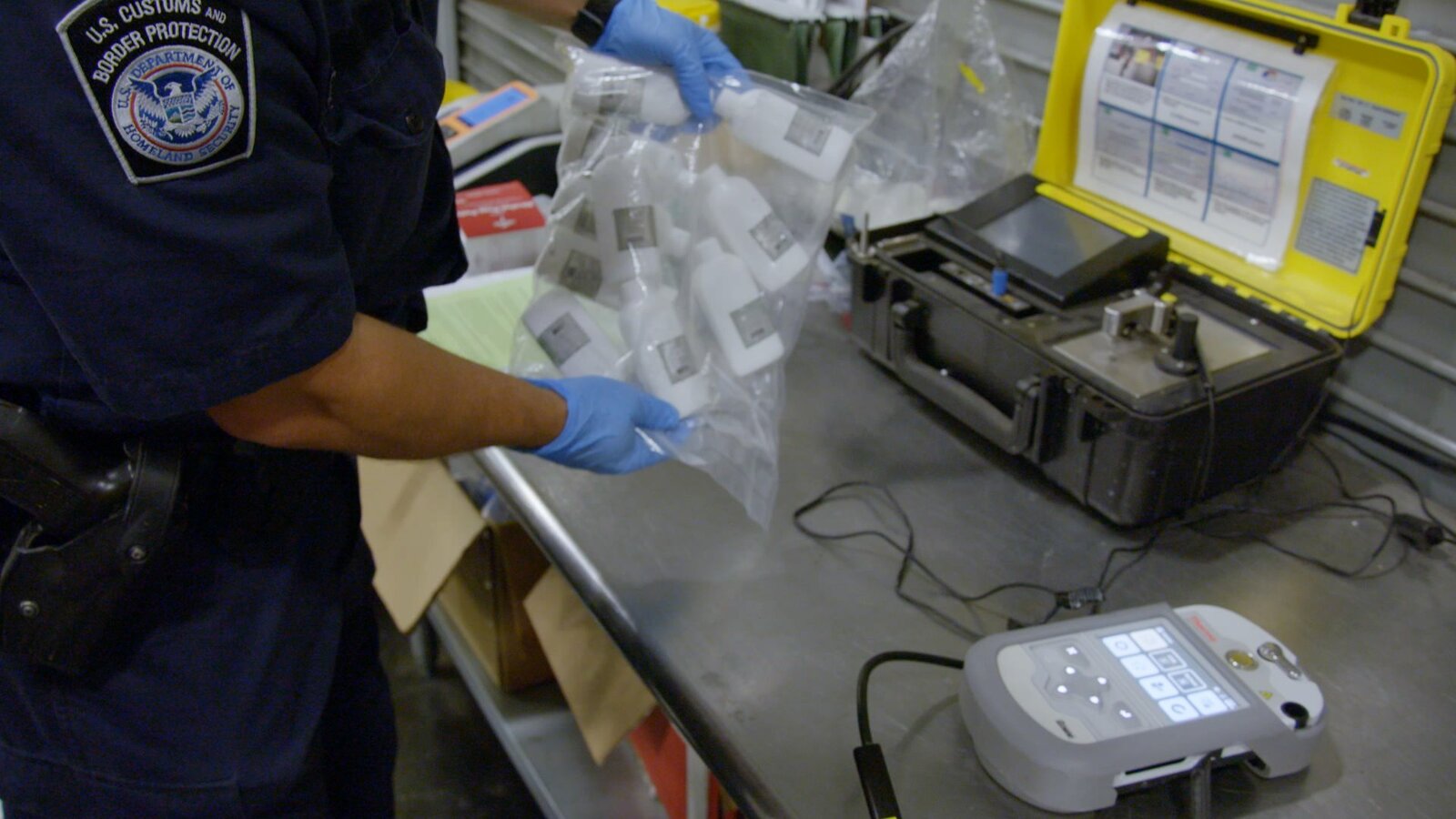 Drogen und GeldCBP Officers at the Miami International Mail Facility discover GBL, a date rape drug, in a package from Europe. (National Geographic/Lucky 8 TV)Bild: © National Geographic/Lucky 8 TV / National Geographic