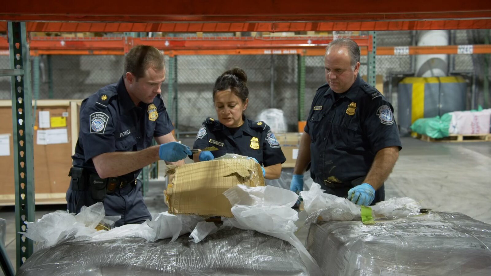 Rohes Fleisch und KokainCBP Agriculture Specialists examine a suspicious green powder at Miami International Airport. (National Geographic/Lucky 8 TV)Bild: © Lucky 8 TV / National Geographic/Lucky 8 TV / National Geographic