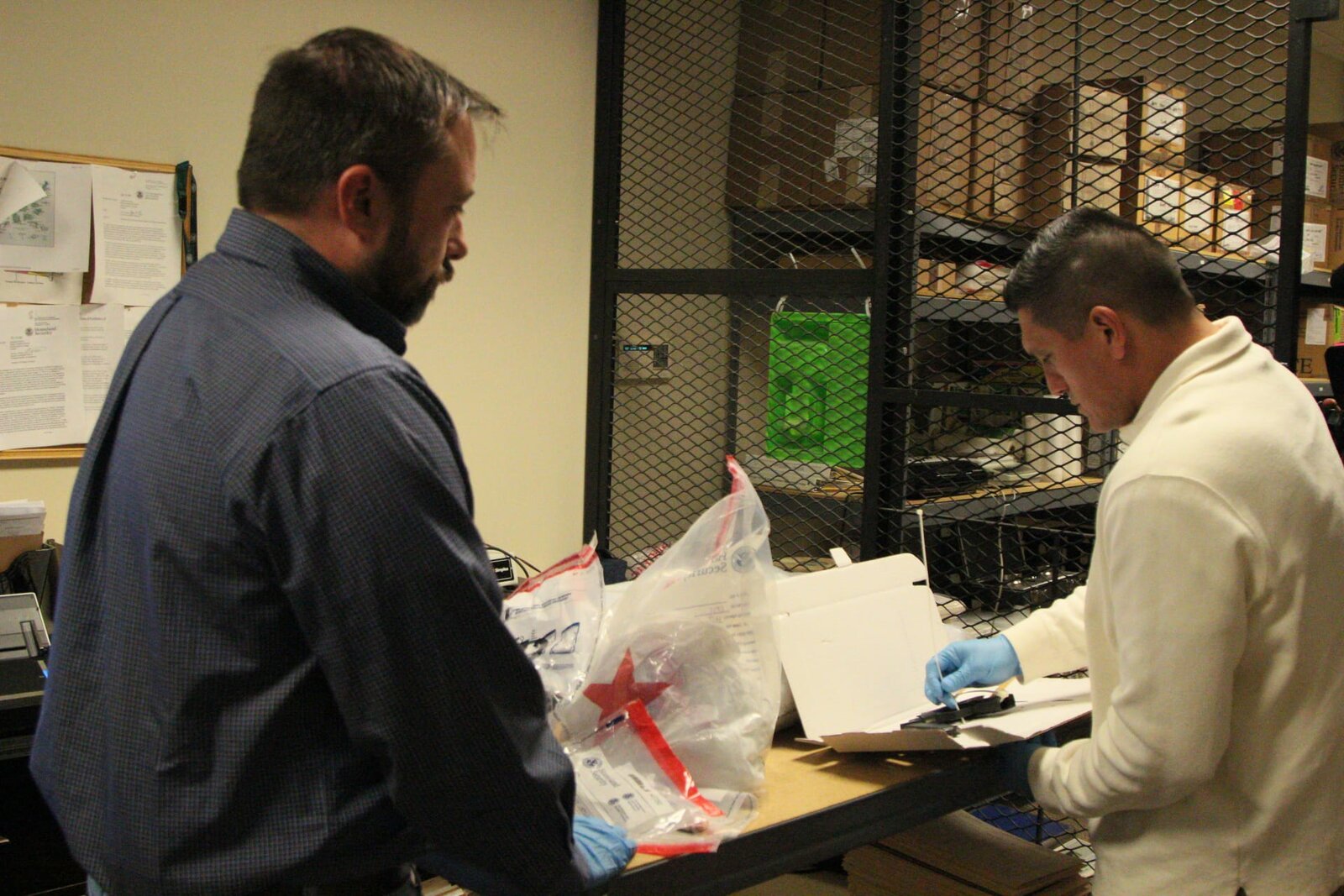 Flossen-SchmuggelHSI Agent Steve Ledgerwood and Mario Cebrera place the gun and drugs that were seized in the evidence room. (National Geographic/Lucky 8 TV)Bild: © Lucky 8 TV / National Geographic/Lucky 8 TV / National Geographic