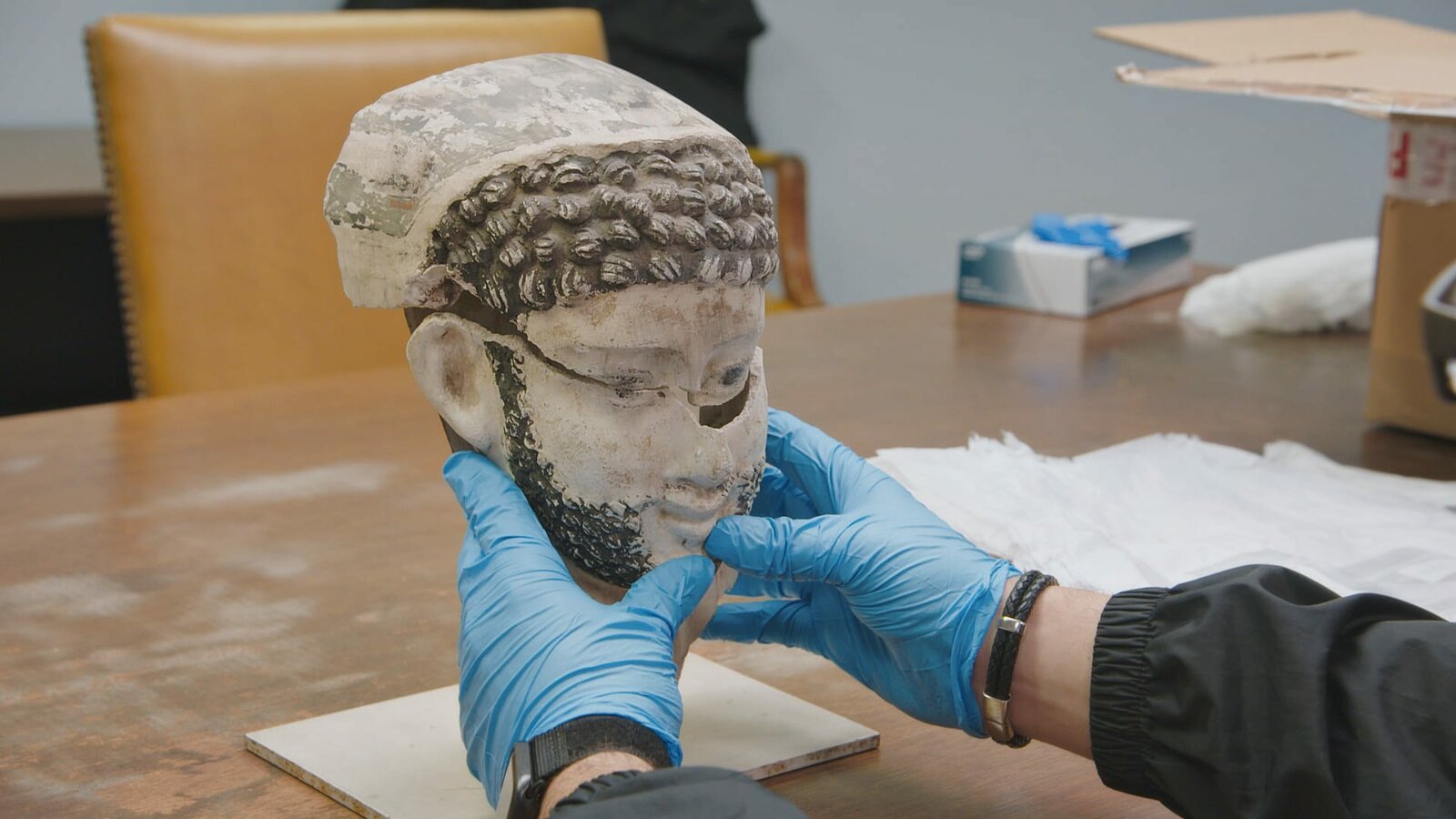 AntikenhehlereiOfficer Acevedo uncovers an ancient Egyptian mask. (National Geographic)Bild: © National Geographic / National Geographic