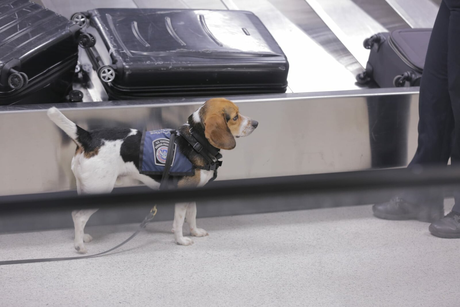 Einmal Schmuggler, immer Schmuggler?A CBP agriculture canine sniffs luggage on the baggage carousel at Miami International Airport. (National Geographic/Lucky 8 TV)Bild: © Copyright © The National Geographic Channel.