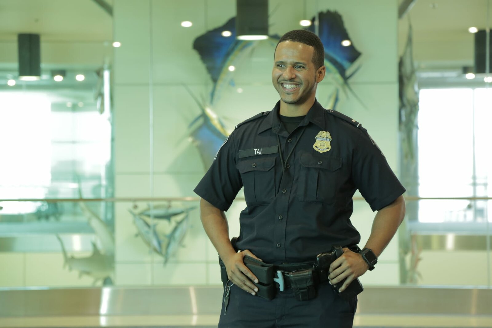 Köder und AblenkungenCBP Officer Tai waits for an international flight to deplane at Miami International Airport. (National Geographic/Lucky 8 TV)Bild: © Lucky 8 TV / National Geographic/Lucky 8 TV / National Geographic