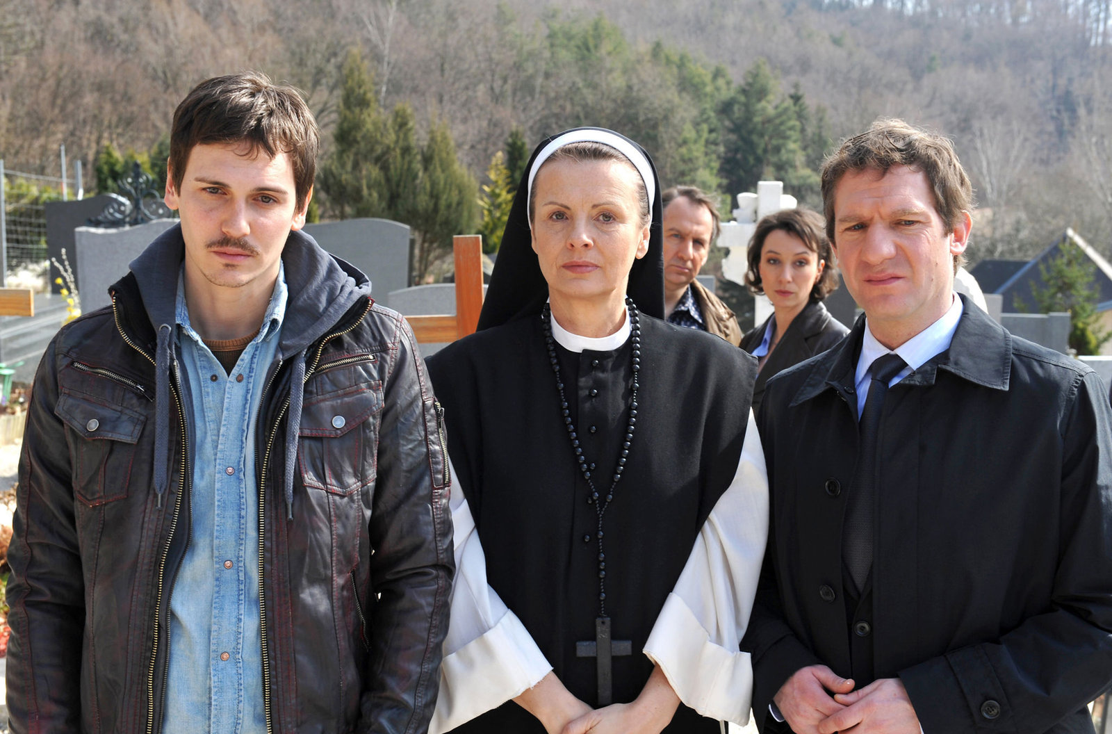 Sr. Margarete LaubIm Kneippbecken eines Klosters wird eine Nonne tot aufgefunden. Ein gut gelaunter Stefan macht sich sogleich daran, die Todesursache festzustellen. Angelika Schnell ist ob so viel guter Laune sofort verwirrt und hat sowieso selbst genügend Probleme: Oberst Schuster, ein Sonderermittler, versucht Angelika fahrlässiges Verhalten im Fall des Unfalltods des Serienmörders Peter Feiler nachzuweisen. - V. li.: Hermann Laub (Christopher Schärf), Walburga Keil (Ulli Maier), Harald Franitschek (Wolf Bachofner), Angelika Schnell (Ursula Strauss) und (Markus Waldner) Johannes Zeiler.Bild: © rbb/ BR/ORF/Hubert Mican