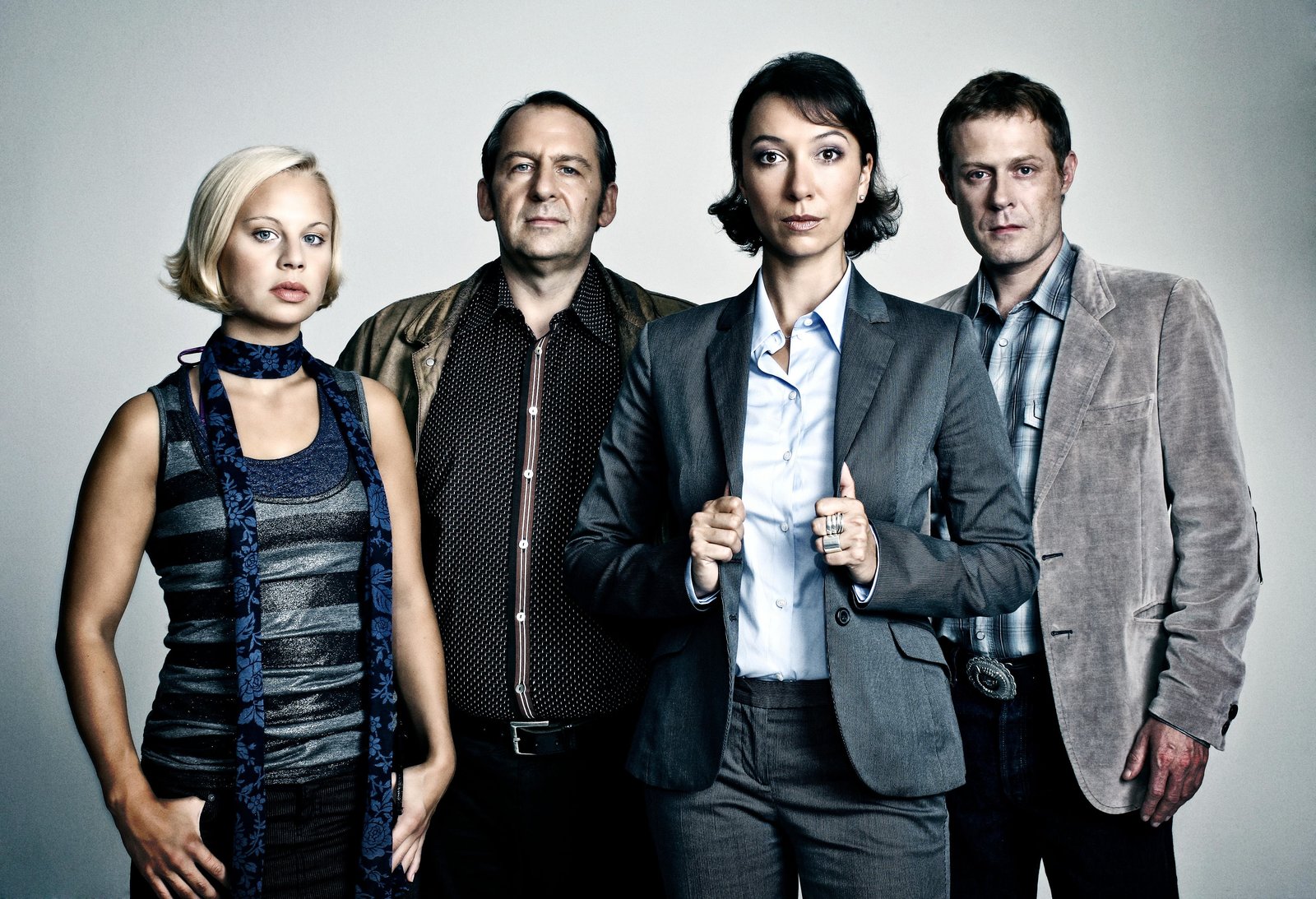 Angelika SchnellNeue Serie: Schnell ermittelt "Herta Weissenberger". Im Bild (v.li.): Katharina Straßer (Maja Landauer), Wolf Bachofner (Harald Franitschek), Ursula Strauss (Angelika Schnell), Andreas Lust (Stefan Schnell).Bild: © Byline: Petro Domenigg, Credit: ORF, Source: ORF,