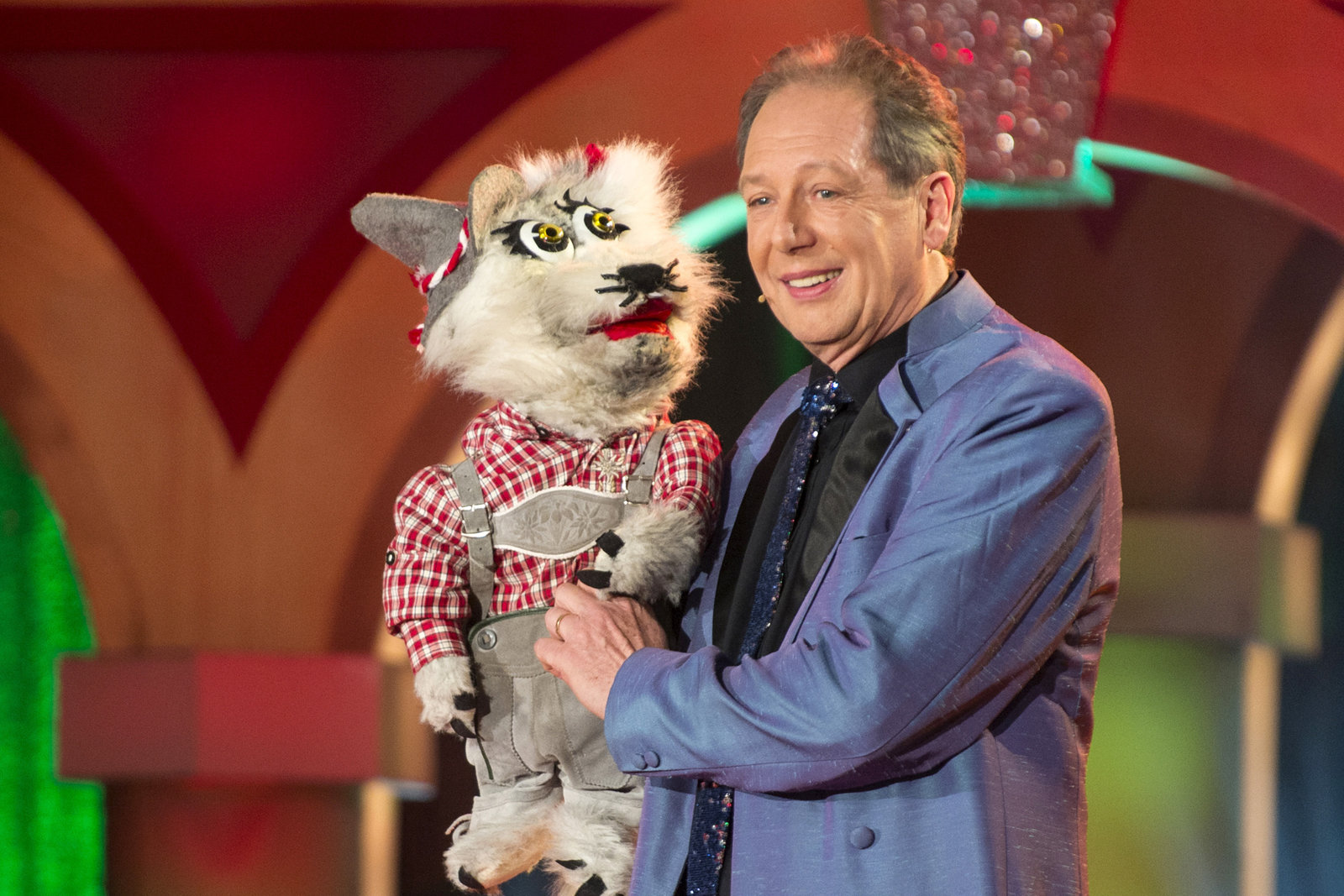 2018SWR Fernsehen NÄRRISCHE WOCHEN IM SÜDWESTEN, "Schwaben weissblau - Hurra und helau", am Sonntag (28.01.18) um 20:15 Uhr. Und er darf keinesfalls beim Fasching in Memmingen fehlen: Bauchredner Perry Paul mit Amadeus.Bild: © SWR/BR/Ralf Wilschewski / SWR-Presse/Bildkommunikation