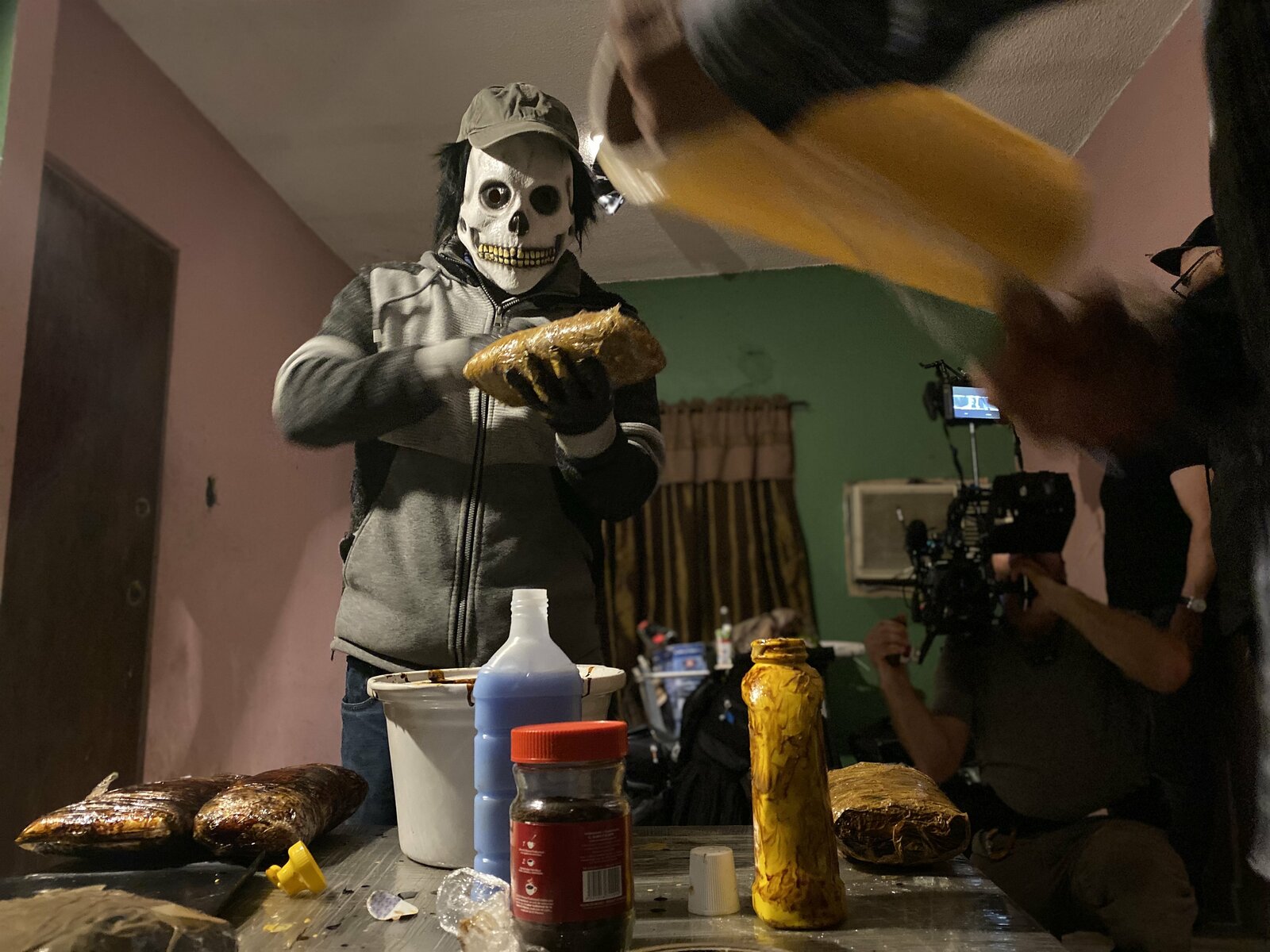 FentanylTwo masked packers show Mariana van Zeller (center) how they wrap a package of fentanyl to be smuggled into the U.S. (Credit: National Geographic)Bild: © National Geographic / National Geographic Image Collection / National Geographic