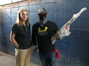 WaffenschmuggelMexicali, Mexico - Mariana van Zeller (L) with a gun runner for the Sinaloa Cartel as he holds an automatic weapon wrapped in paper and plastic. (Credit: National Geographic/Muck Media)Bild: © Licensed by Walt Disney Company Germany GmbH (ehem: Buena Vista GmbH (Germany)) Lizenzbild frei