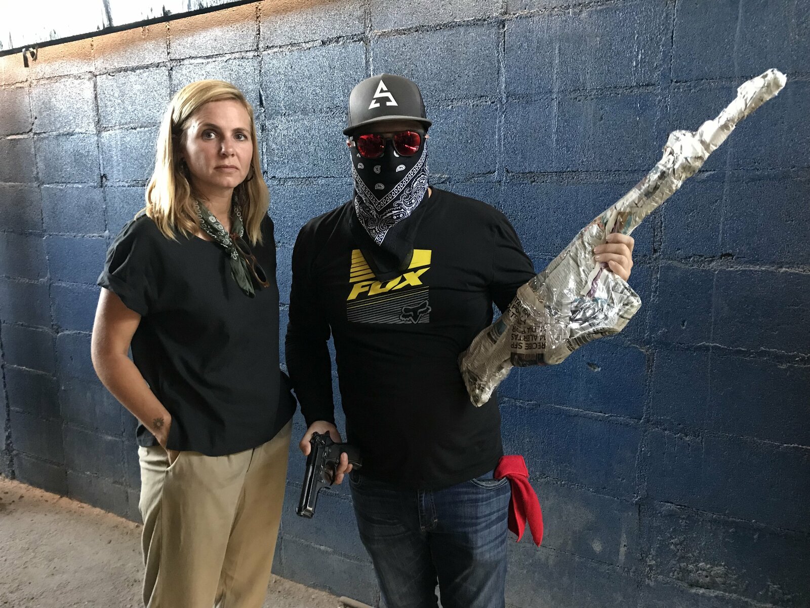 WaffenschmuggelMexicali, Mexico - Mariana van Zeller (L) with a gun runner for the Sinaloa Cartel as he holds an automatic weapon wrapped in paper and plastic. (Credit: National Geographic/Muck Media)Bild: © Muck Media / National Geographic/Muck Media / National Geographic
