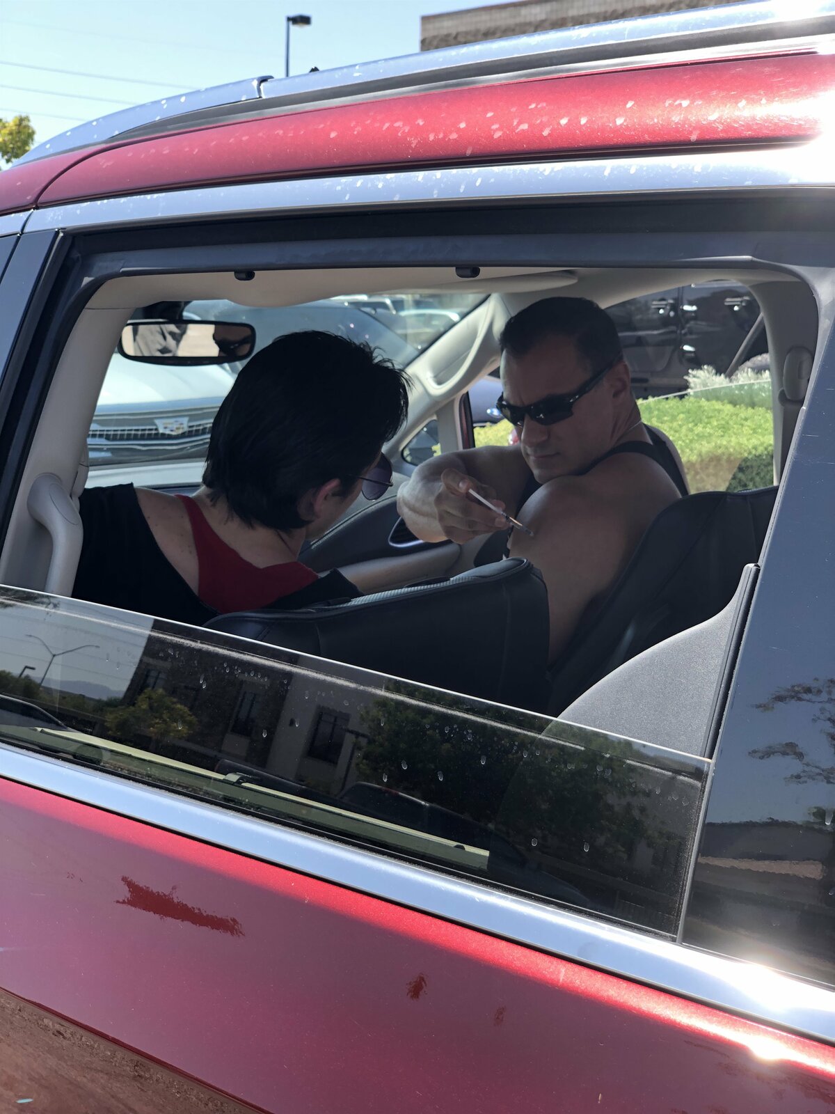 SteroideL to R: Young protege, Zac, watches as Tony injects himself with steroids in car ahead of a workout. (National Geographic)Bild: © National Geographic / National Geographic