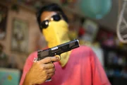 MenschenhandelDANAO, PHILIPPINES- Mr. Amado pointing a gun at the camera. (Photo Credit: National Geographic Channels/Tom Jenner)Bild: © National Geographic Channel