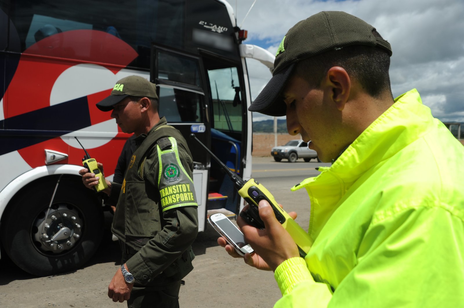 Der SchwarzmarktIPIALES, COLOMBIA- National Colombian Police at a border with Ecuador, checking a phone.Bild: © National Geographic Channels / Almudena Garcia-Parrado