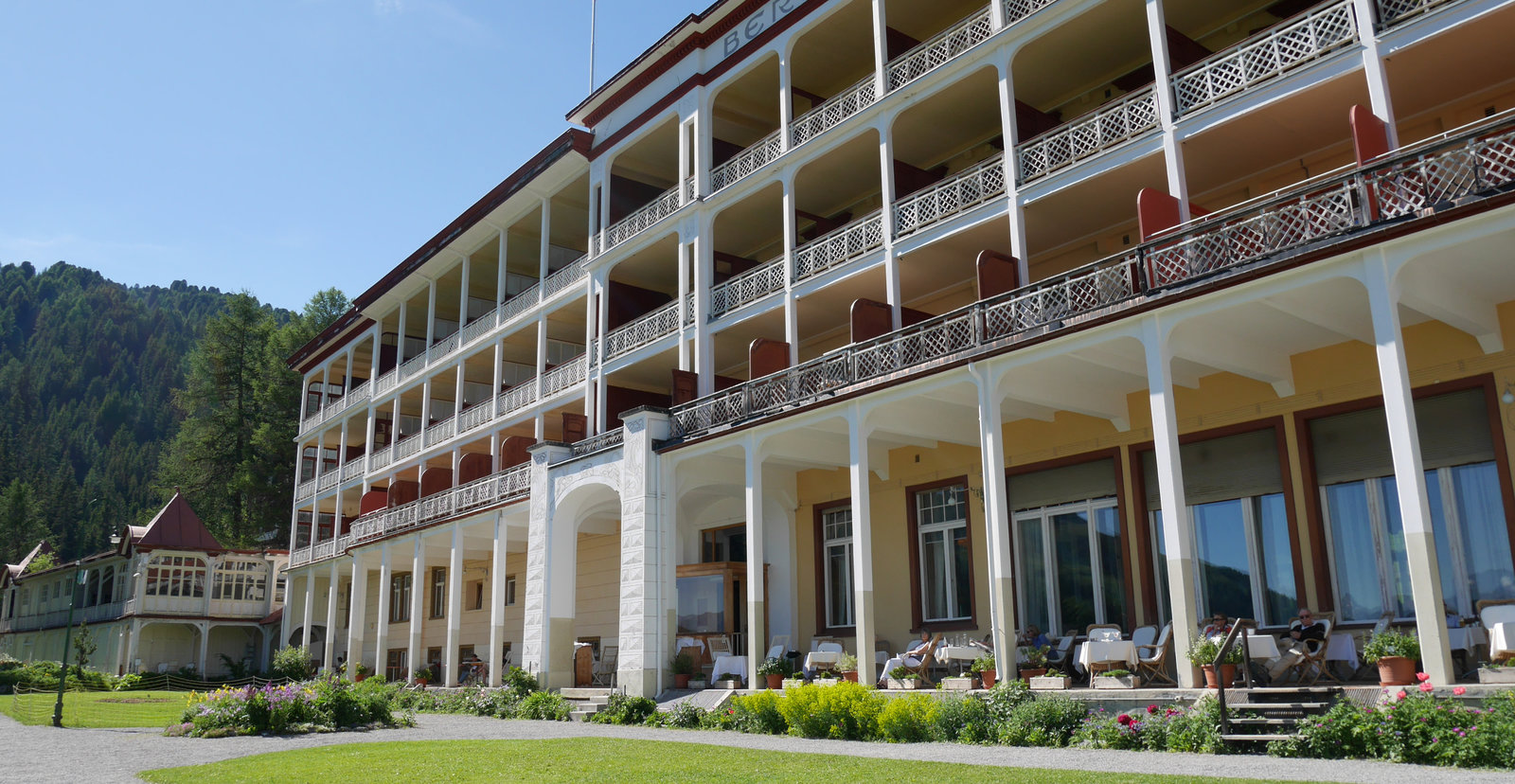 Legenden am BergSchatzalp Arkadengang zum HotelBild: © ZDF und SRF-Almut Faass