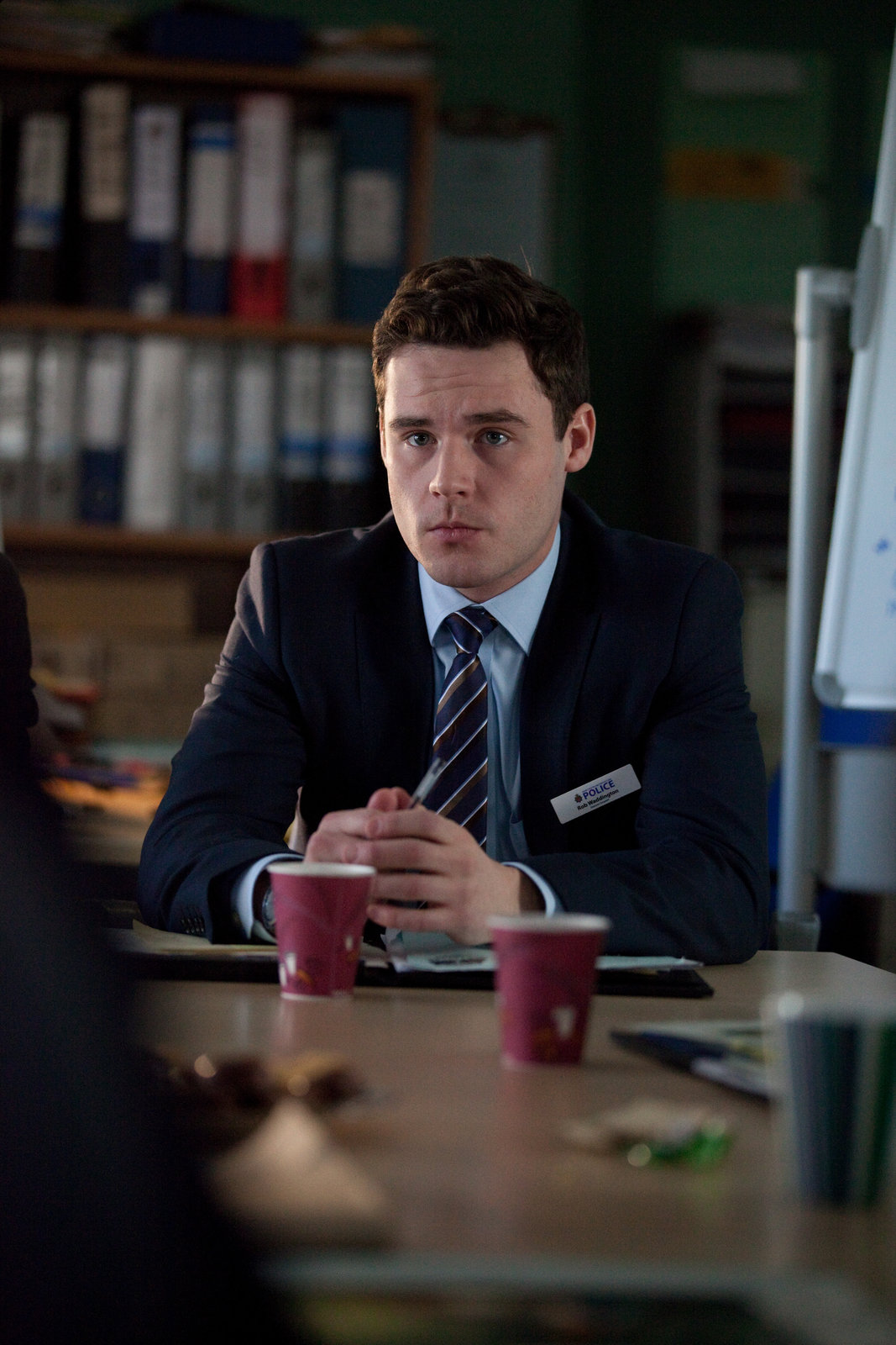 BruderzwistDS Rob Waddington (Danny Miller) gerät mit Rachel aneinander. Diese beschuldigt Robs Vater, der damals im Fall Mandy Sweeting zuständig war, schlampige Arbeit geleistet zu haben.Bild: © ZDF und Ben Blackall