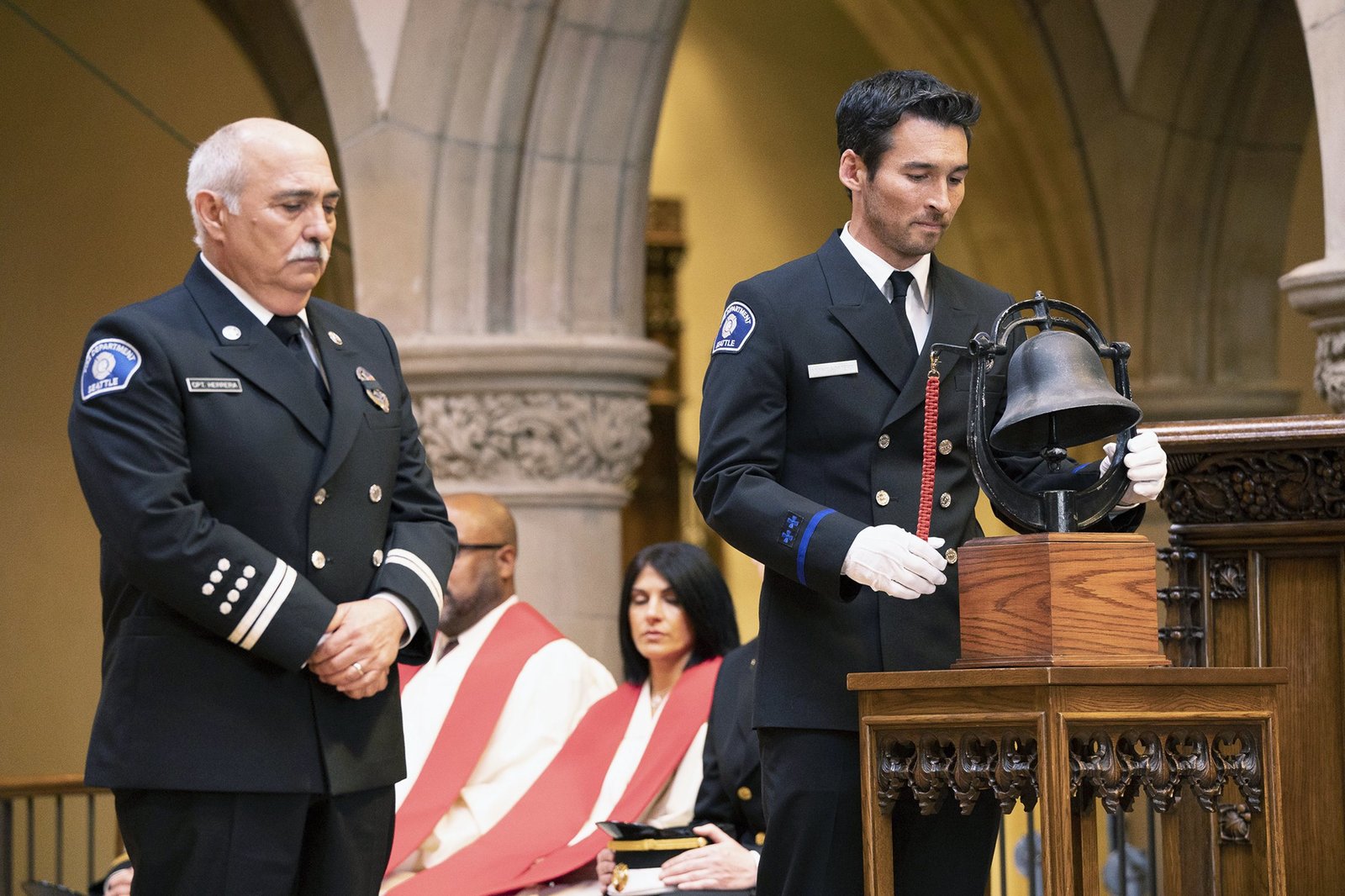 GlockenläutenStation 19 Staffel 2 Folge 16 Die Glocke klingt für den Toten: Miguel Sandoval als Pruitt Herrara, Jay Hayden als Travis Montgomery Copyright: SRF/ABC StudiosBild: © SRF/ABC Studios