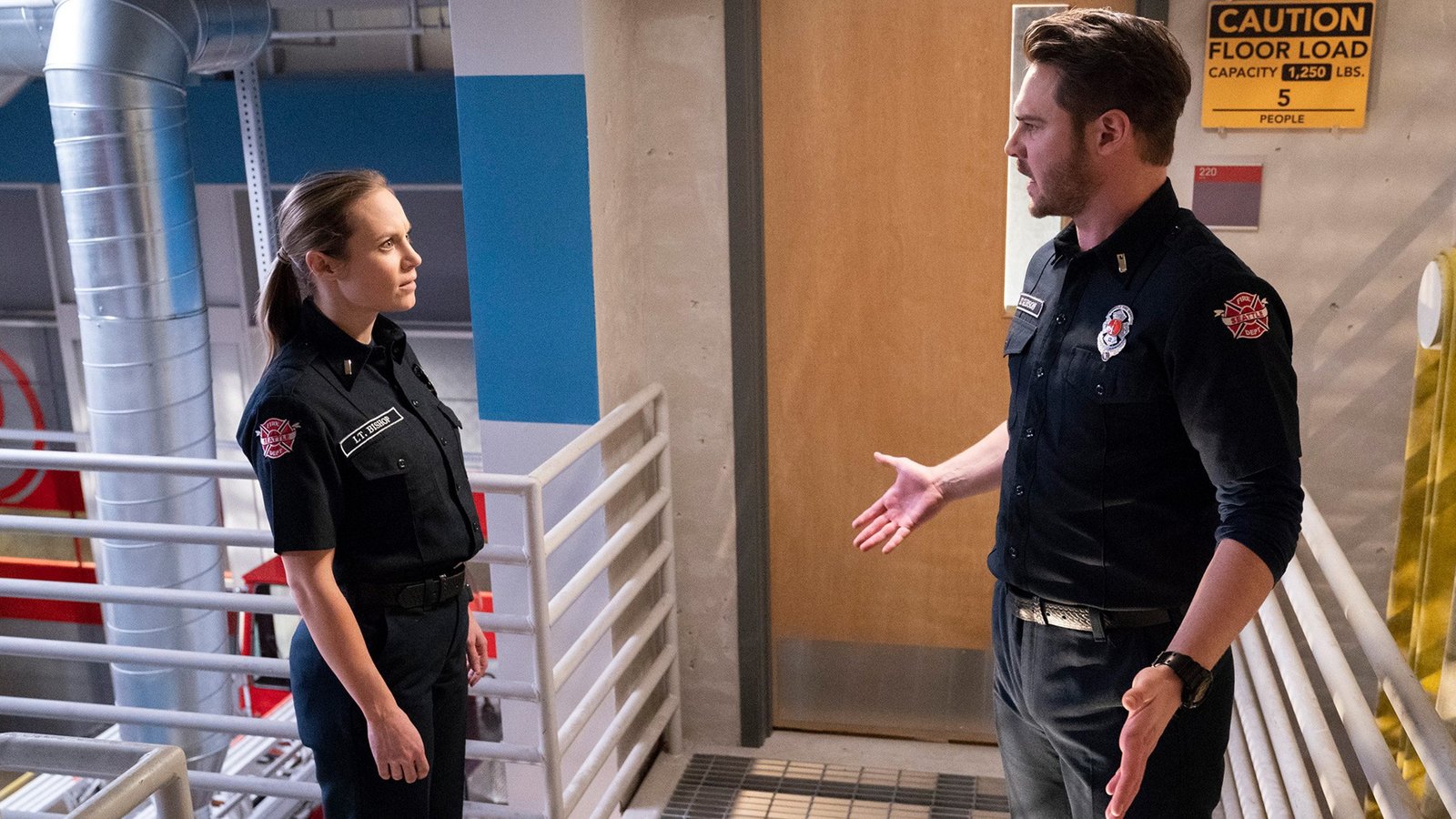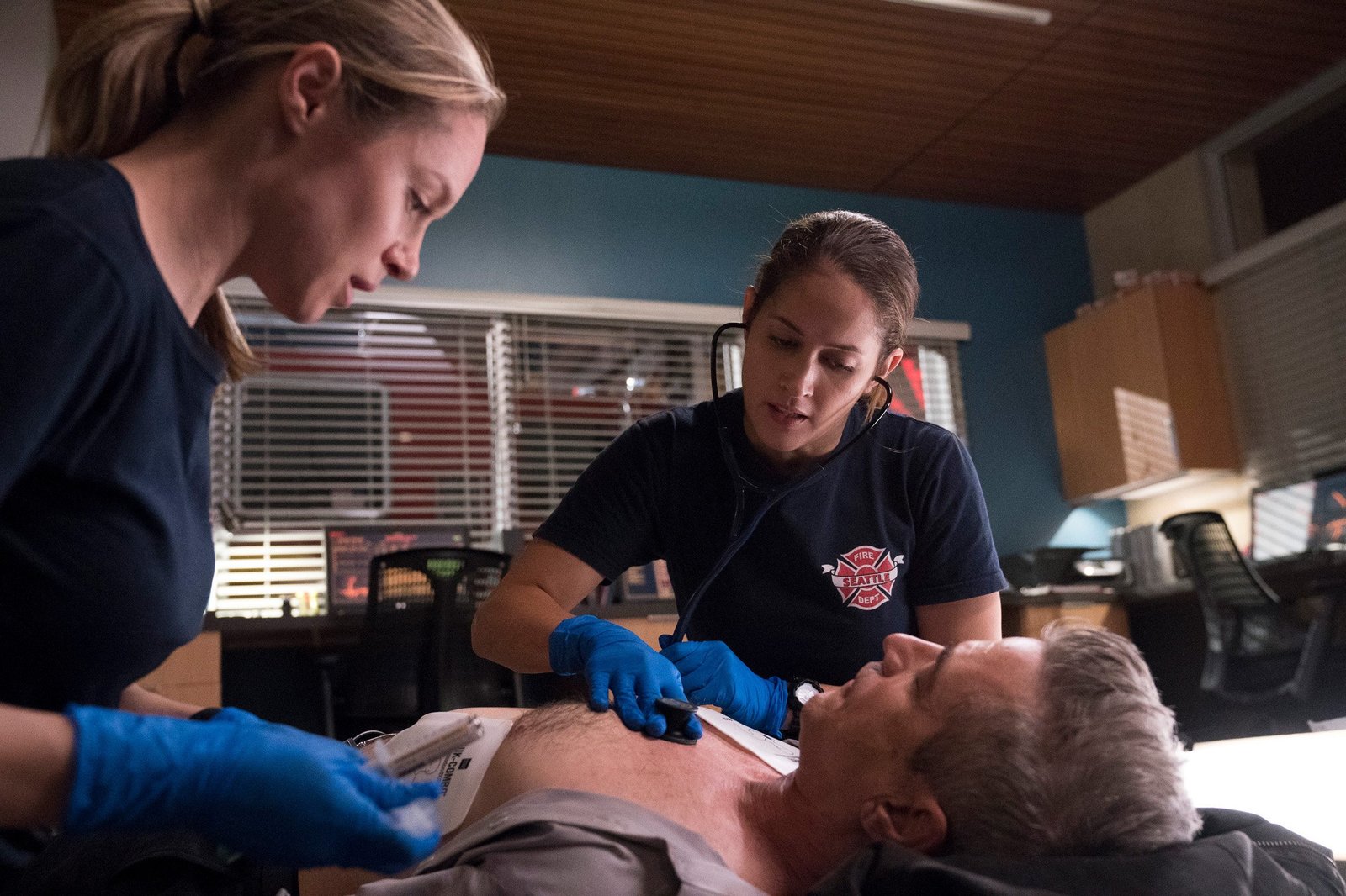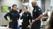 Der letzte Tag auf ErdenStation 19 Staffel 2 Folge 6 Ein Notfall auf der Feuerwache: Danielle Savre als Maya Bishop, Dermot Mulroney als Greg Tanner, Jaina Lee Ortiz als Andy Herrara Copyright: SRF/ABC StudiosBild: © SRF/ABC Studios