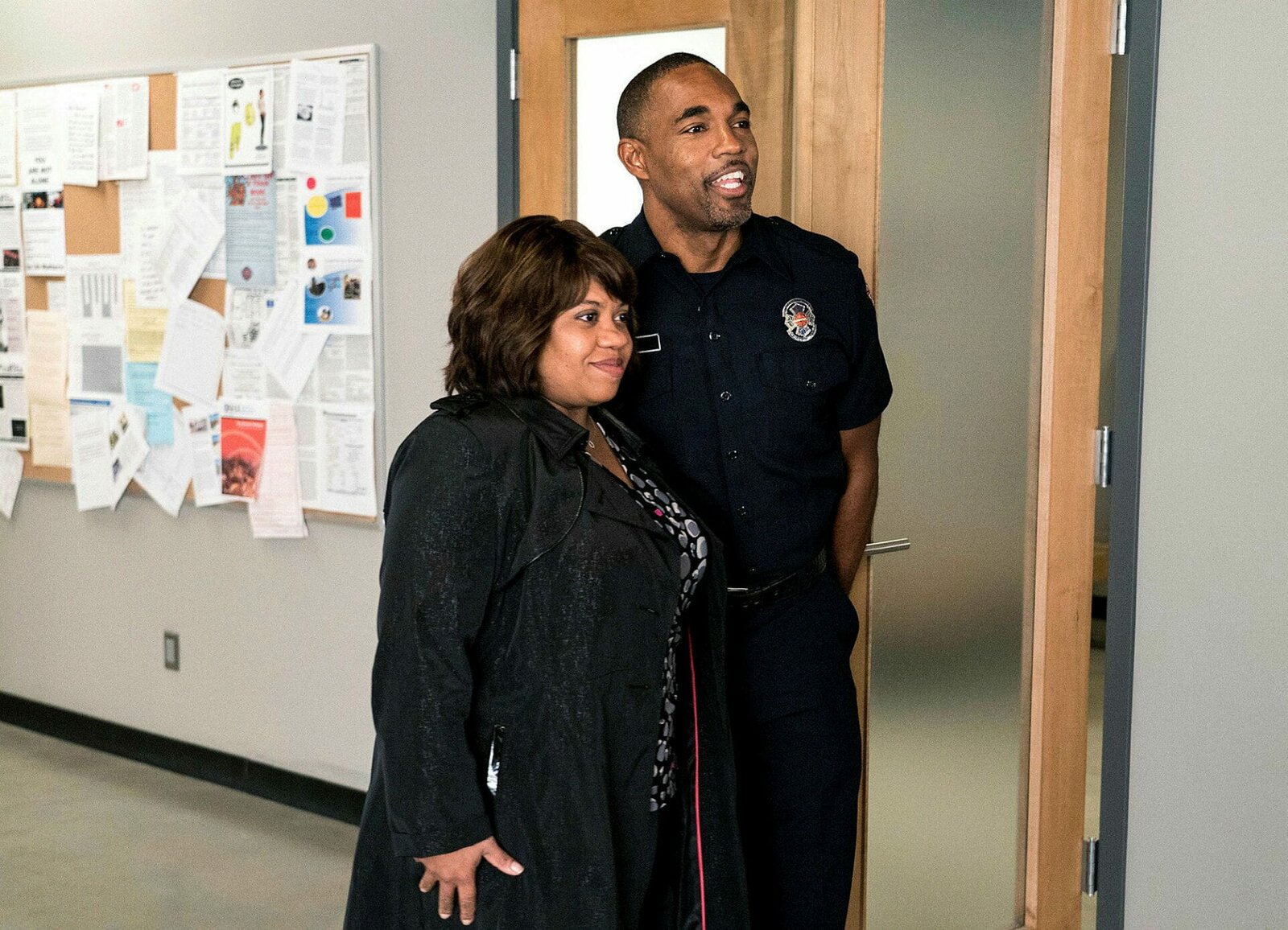 SchockStation 19 Schock Staffel 1, Episode 5 Besuch auf der Feuerwache: Chandra Wilson als Dr. Miranda Bailey, Jason George als Ben Warren (Copyright SRF / ABC Studios)Bild: © SRF