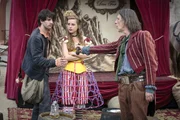 Brüderchen und SchwesterchenDer böse Zauber ist gebannt: Brüderchen (Hans-Laurin Beyerling, li.) hat wieder seine menschliche Gestalt. Schwesterchen (Odine Johne) und der König (Jonas Jägermeyr) freuen sich.Bild: © MDR/Antje Dittmann