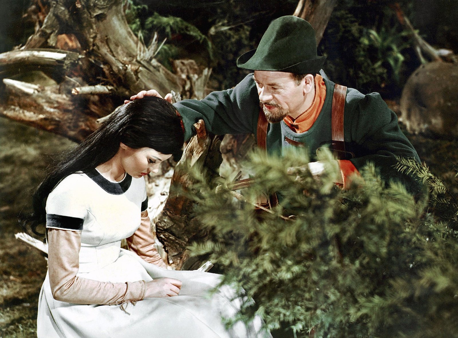 Märchenhafte WeihnachtenDer Jäger (Harry Hindemith) hat Mitleid mit Schneewittchen (Doris Weikow) und widersetzt sich dem Befehl der bösen Schwiegermutter, das Mädchen zu töten und lässt es leben.Bild: © WDR