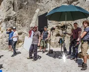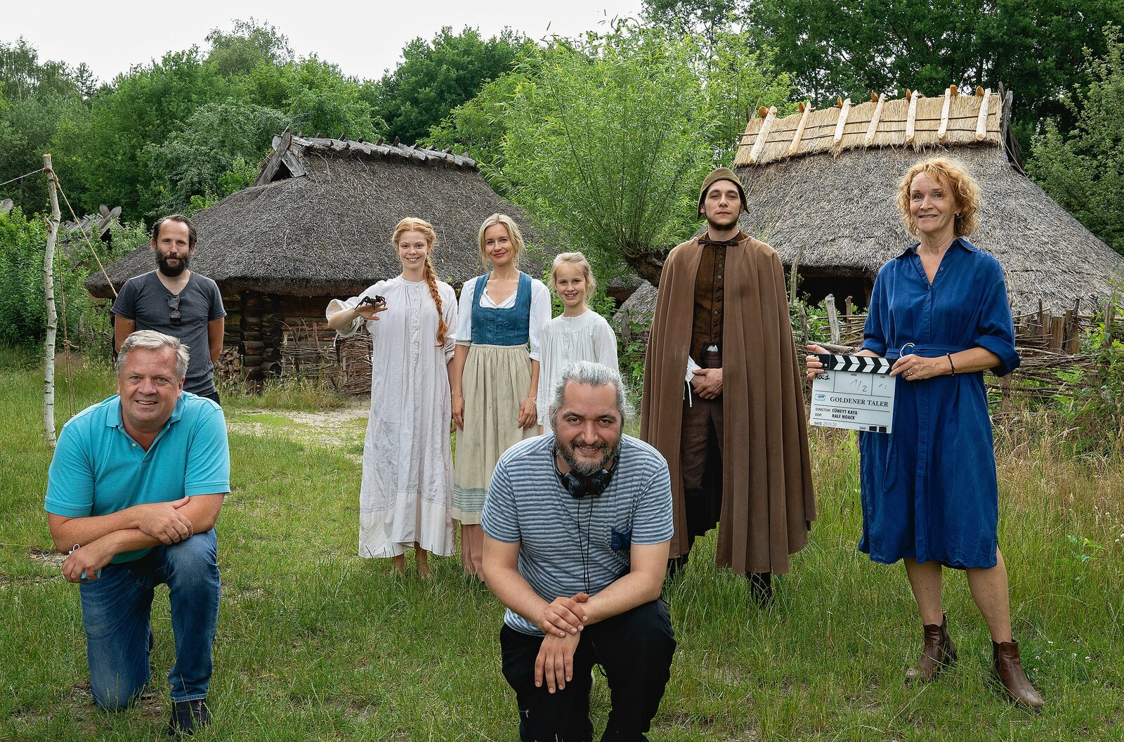 Das Märchen vom goldenen Taler - Das Making of zum FilmRUNDFUNK BERLIN-BRANDENBURG Drehstart zum 50. Märchen der ARD-Reihe "Sechs auf einen Streich": rbb verfilmt "Das Märchen vom goldenen Taler" für Das Erste Die ARD-Märchenreihe "Sechs auf einen Streich" feiert dieses Jahr ein Jubiläum. Am 23. Juni haben die Dreharbeiten zu ihrem 50. Märchen-Klassiker begonnen. Unter Federführung des Rundfunk Berlin-Brandenburg (rbb) und in Koproduktion mit Radio Bremen wird "Das Märchen vom goldenen Taler" nach Motiven von Hans Fallada neu in Szene gesetzt. Vor der Kamera stehen Stefanie Stappenbeck, Dominique Horwitz, Valerie Sophie Körfer, Dennenesch Zoudé, Stephan Grossmann, Justus Czaja u. v. a. Regie führt Cüneyt Kaya. Das Drehbuch stammt von Heike Brückner von Grumbkow und Jörg Brückner in Bearbeitung von Enrico Wolf. - Hintere Reihe von links: Ralf Noack (Kamera), Valerie Sophie Körfer (Anna Barbara), Stefanie Stappenbeck (Mutter Monika), Frida Brandenburg (Eva), Sandro Fioravanti (Torwächter), Gabriele Jung (Produzentin). Vordere Reihe von links: Marc Schneider (Produzent), Cüneyt Kaya (Regie) © rbb/Michael Rahn, honorarfrei - Verwendung gemäß der AGB im engen inhaltlichen, redaktionellen Zusammenhang mit genannter rbb-Sendung und bei Nennung "Bild: rbb/Michael Rahn" (S2+). rbb Presse & Information, Masurenallee 8-14, 14057 Berlin, Tel: 030/97 99 3-12118 oder -12116, pressefoto@rbb-online.deBild: © rbb/Michael Rahn / rbb Presse & Information