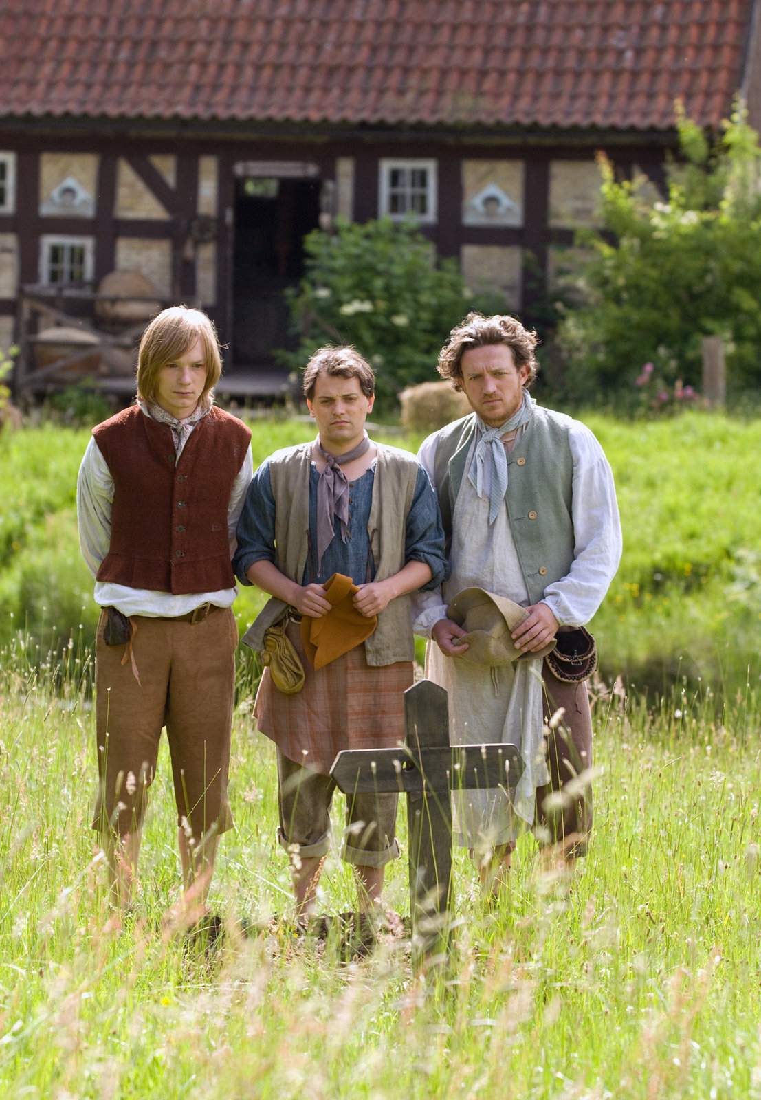Der gestiefelte Katerv.l.: Die drei jungen Müller (Josef Heynert, Stefan Haschke, Jakob Matschenz) trauern um ihren Vater.Bild: © NDR/Nicolas Maack