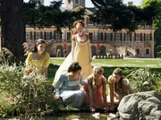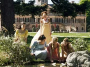 Der FroschkönigDie goldene Kugel ist in den Schlossteich gefallen. Prinzessin Sophie und ihre Freundinnen tun alles, um das wichtigste Geburtstagsgeschenk von Sophie wieder zu finden (v.li. Johanna Leinen, Janina Stopper, Marie-Luise Stahl, Sidonie von Krosigk und Joana Mendl-Fink).Bild: © MDR/SWR/Daniel Flashar